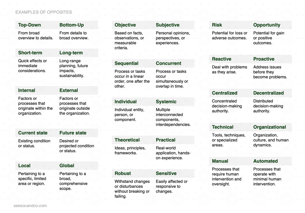Use the opposite ends of a spectrum within a concept to characterize a situation or element under consideration.