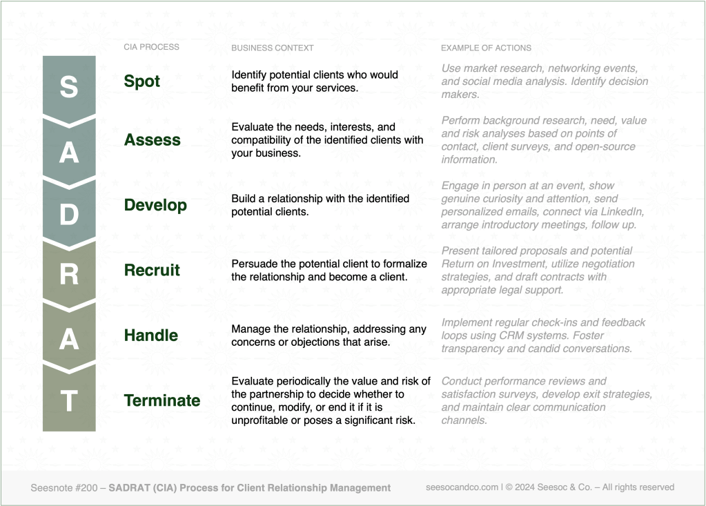 Using a clear process like SADRAT supports systematic and effective client relationship management.