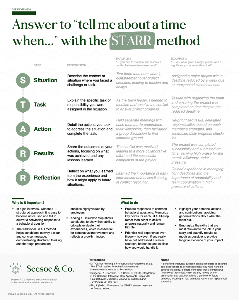 - MIT Career Advising & Professional Development. (n.d.). The STAR method for behavioral interviews. Massachusetts Institute of Technology.