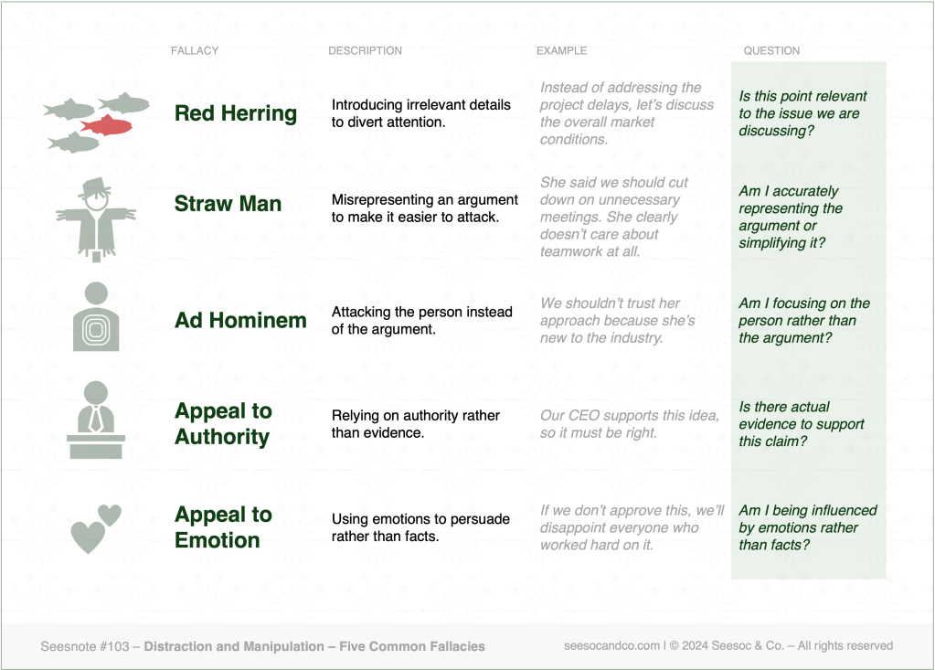 Identifying these fallacies is essential for maintaining focus and supporting rational, well-informed decision making.